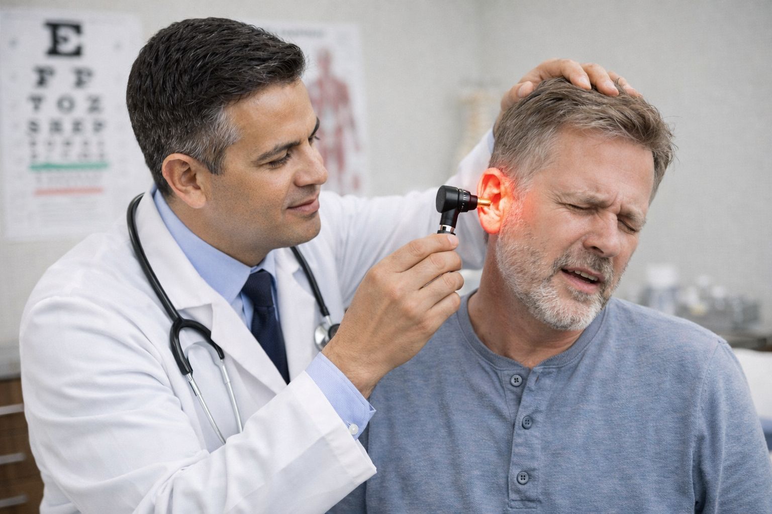 Atención de otitis con evaluación de dolor, fiebre y síntomas asociados.